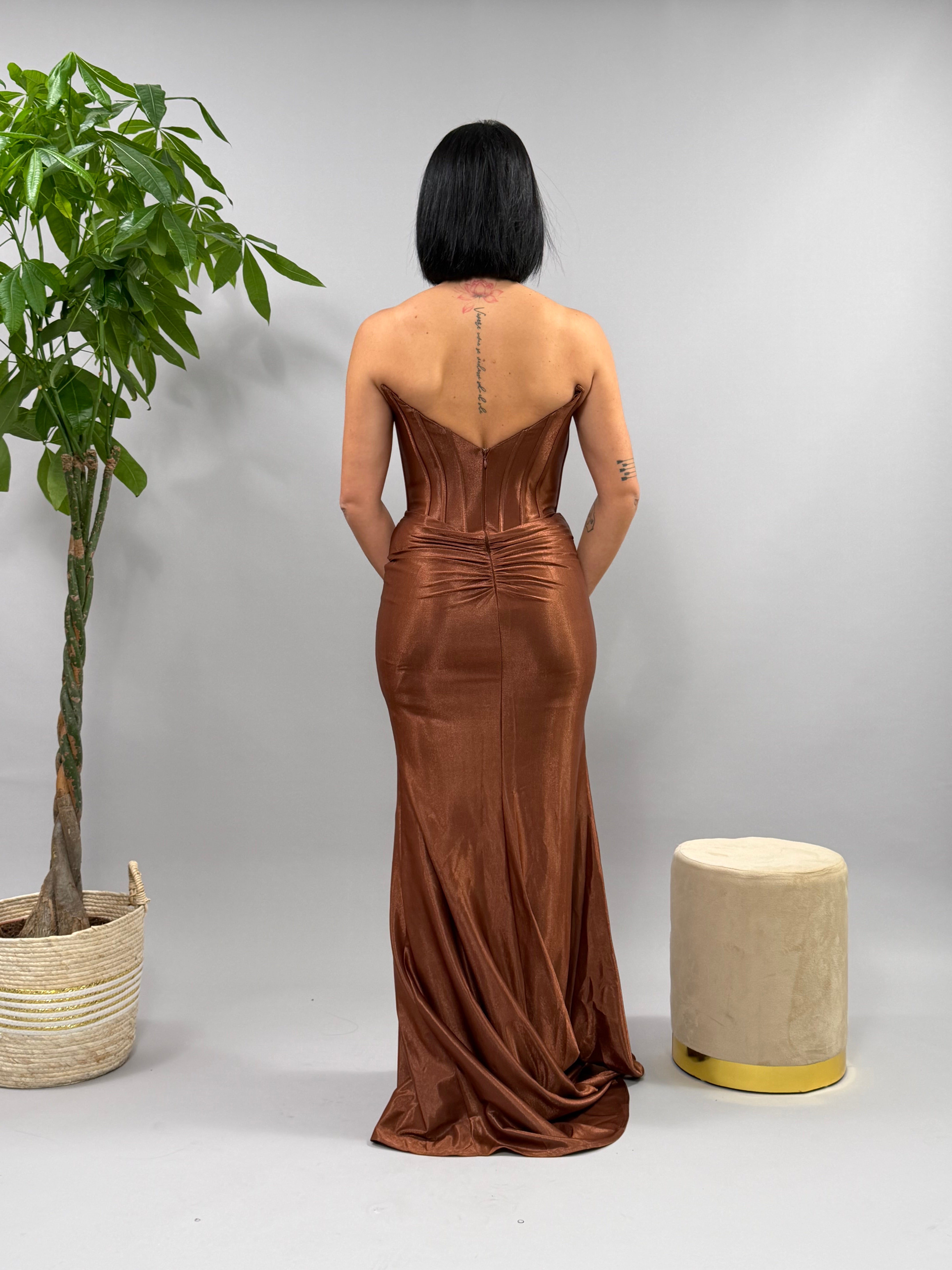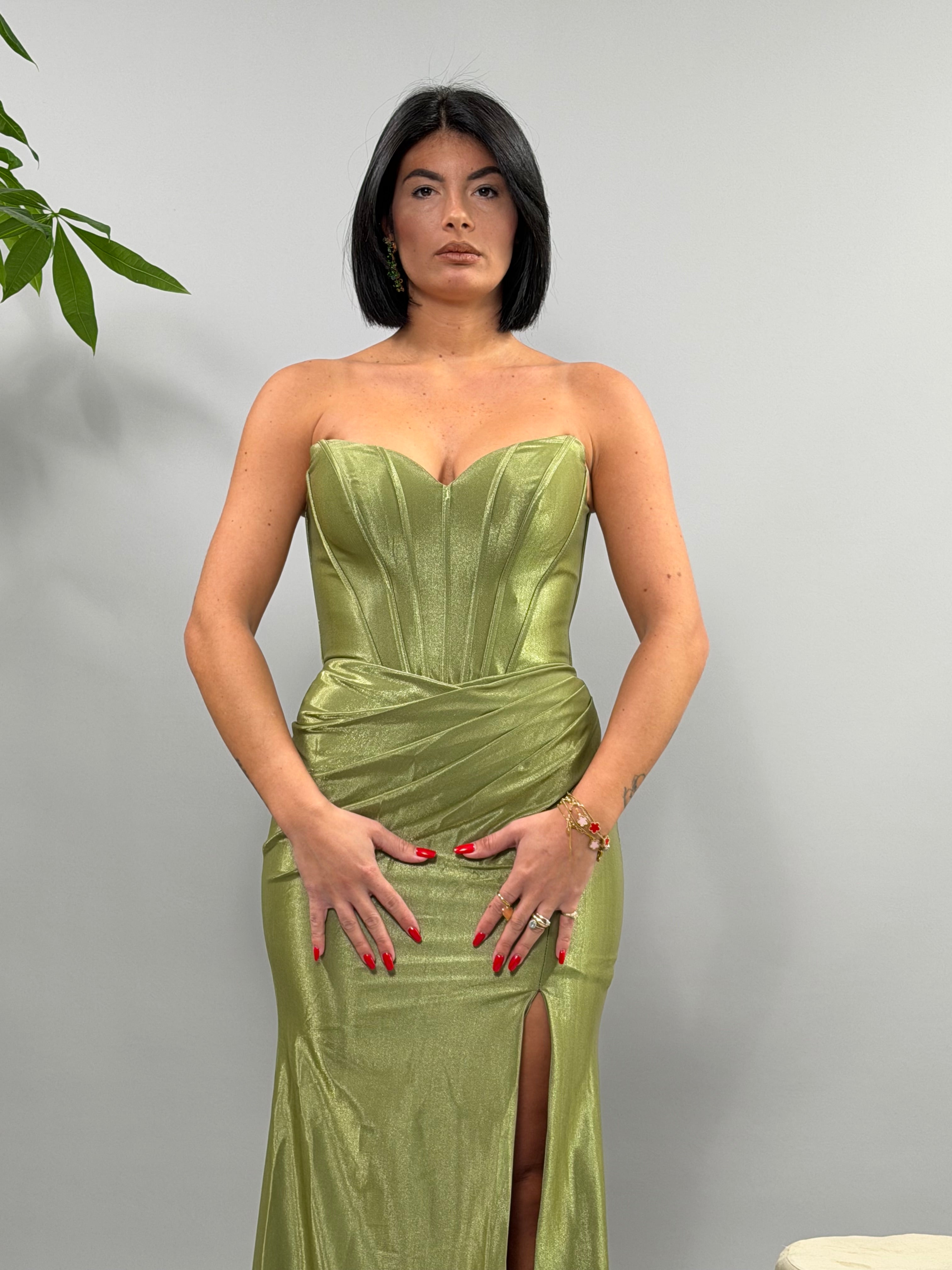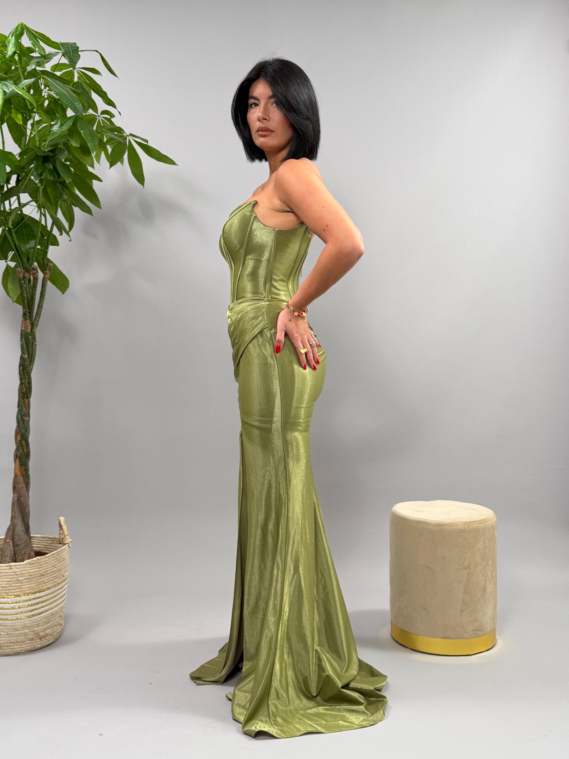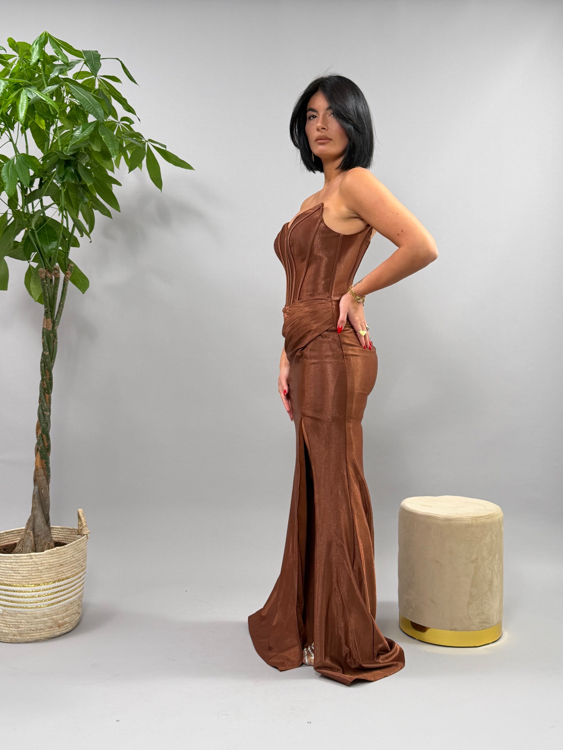 L'Abito Sara è un abito elegante disponibile nelle taglie S, M e L, in due tonalità sofisticate: verde oliva e marrone. La modella indossa una taglia M ed è alta 168 cm, evidenziando la vestibilità del design. Questo abito combina stile ed eleganza, adatto per vari eventi formali.