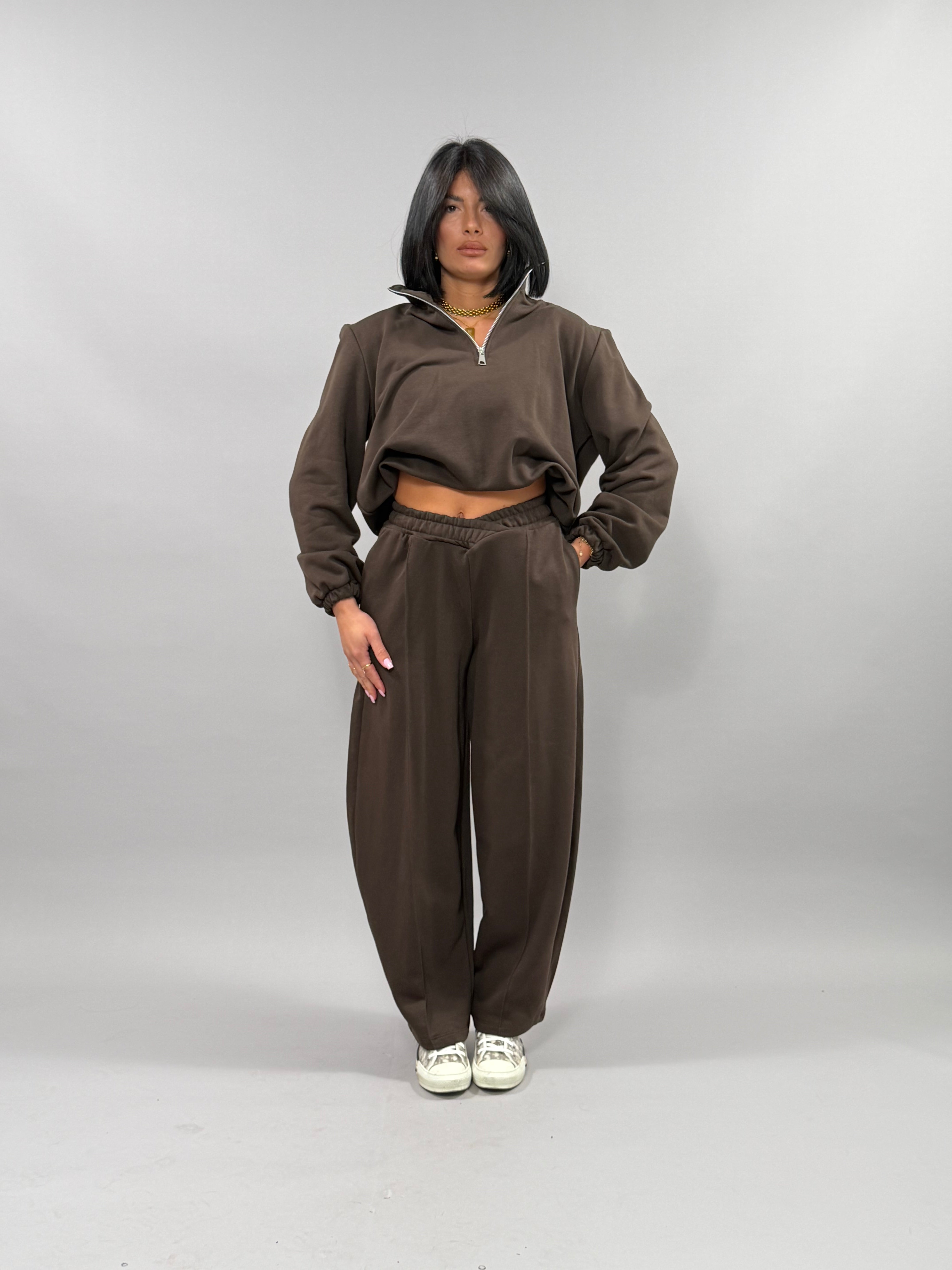 Il Coordinato Vaiana è disponibile in tre eleganti varianti: beige, bordeaux e marrone. La taglia unica si adatta a diversi tipi di corpo, garantendo comfort e versatilità. Ideale per outfit casual o formali, questo coordinato può essere facilmente abbinato ad accessori per un look completo. La modella è alta 168 cm, evidenziando la vestibilità adeguata del prodotto.