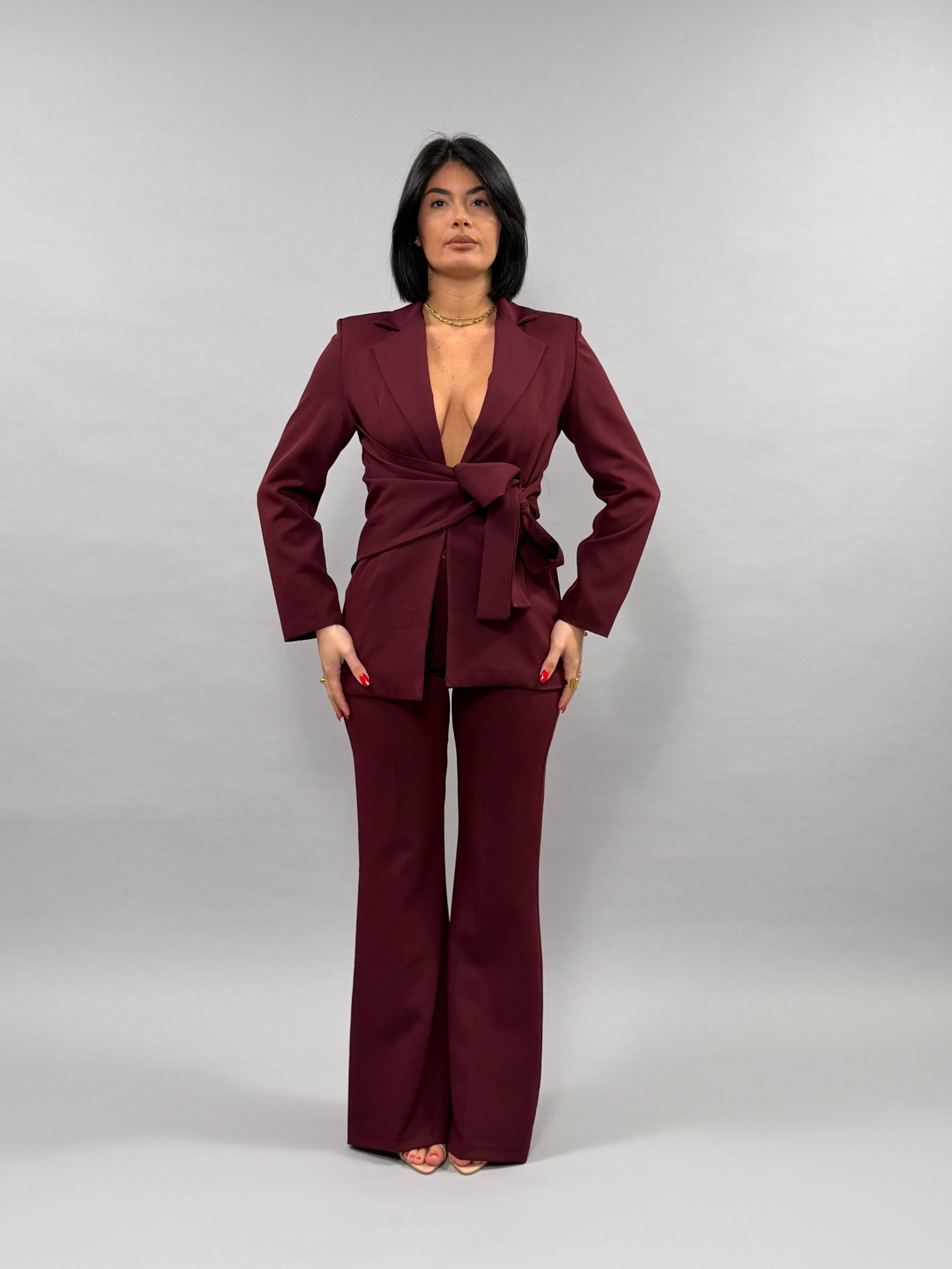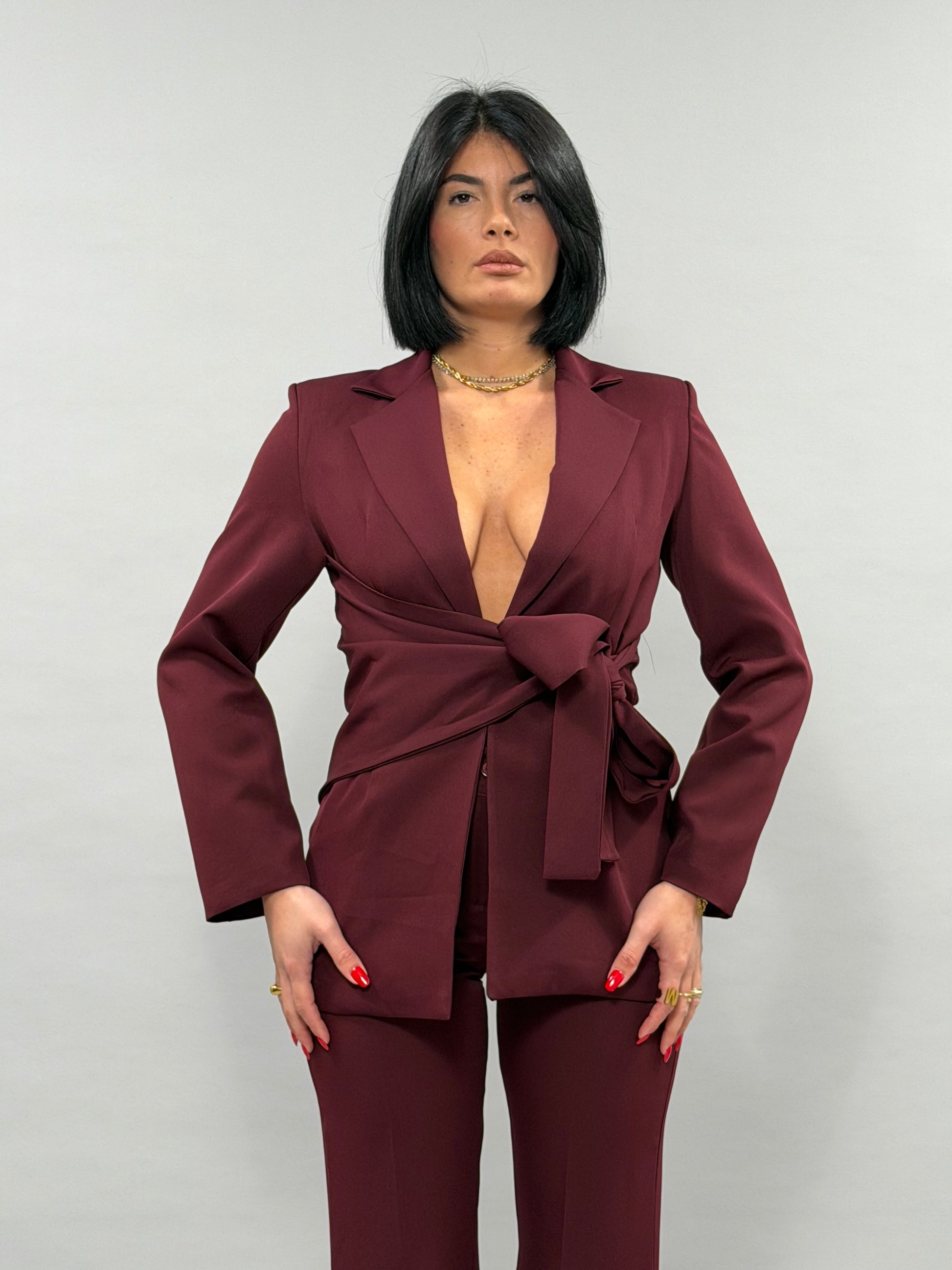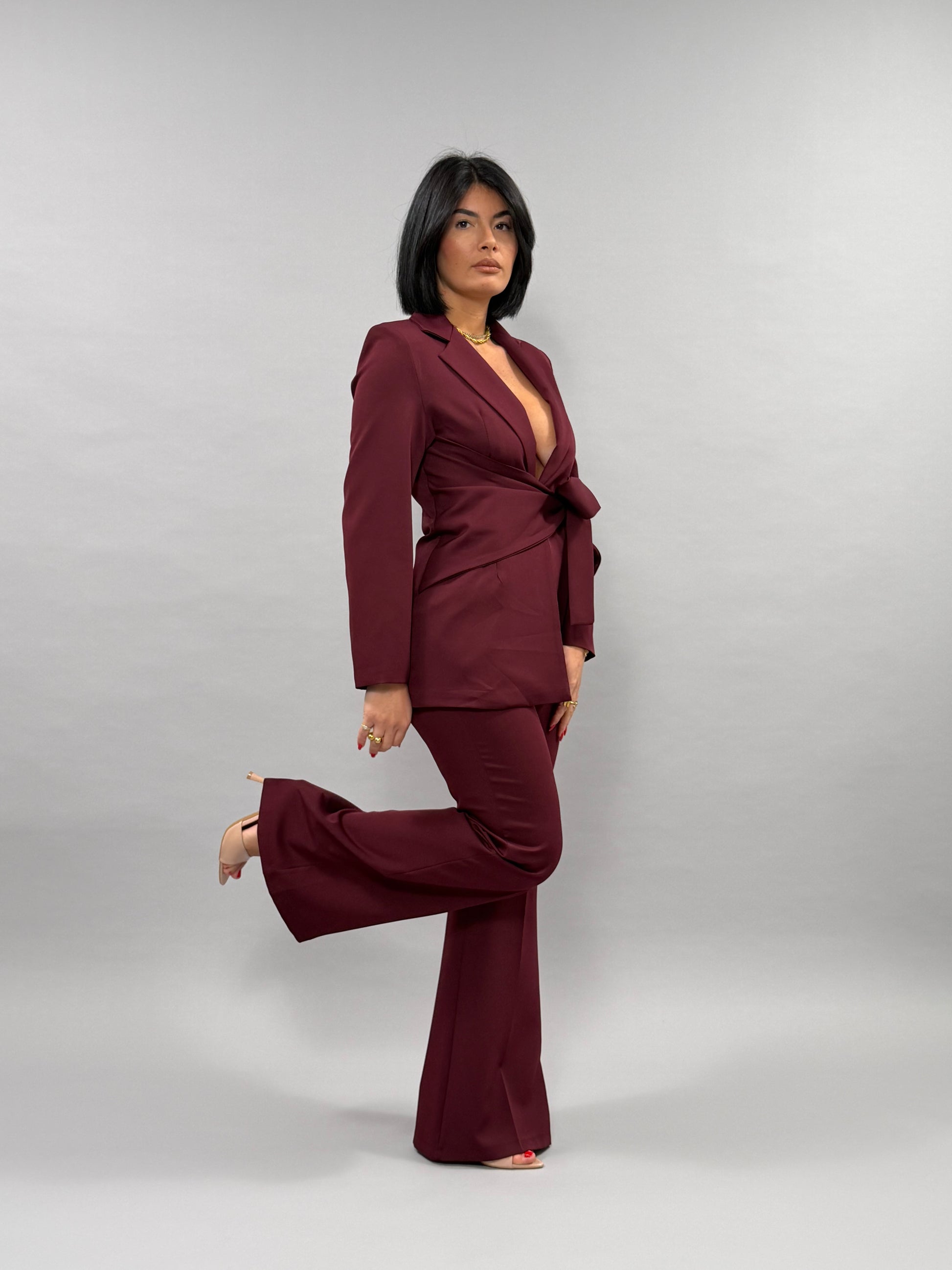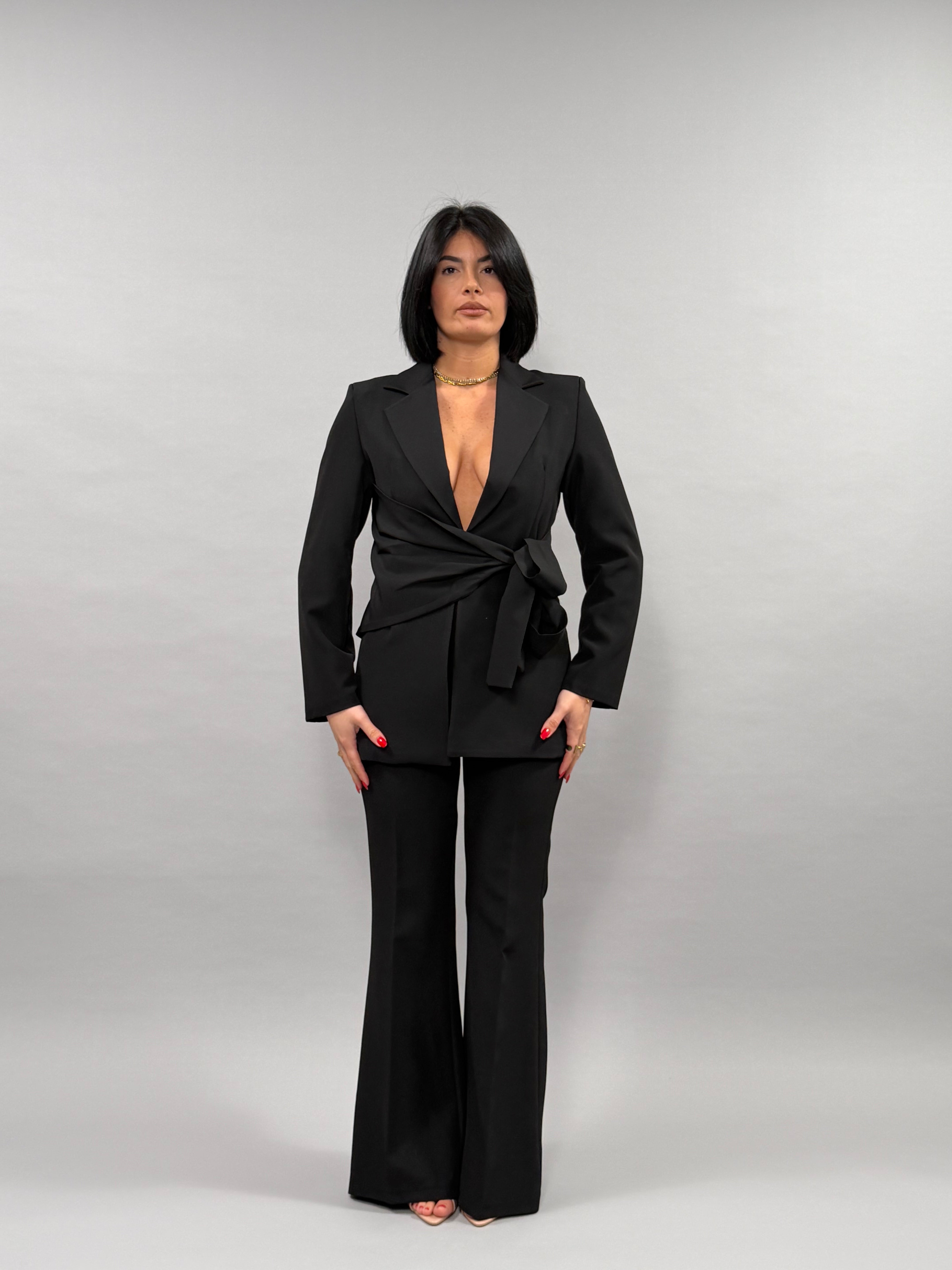 Elegante tailleur con fiocco decorativo, perfetto per occasioni speciali e look sofisticati. Disponibile in quattro colori versatili: giallo, nero, beige e bordeaux. Tagliato in taglia unica che veste fino alla 44, garantisce una silhouette impeccabile e femminile. La modella in foto, alta 168 cm, mostra come il capo valorizza la figura con eleganza. Un pezzo versatile da indossare per cene, eventi e momenti che richiedono stile e raffinatezza.