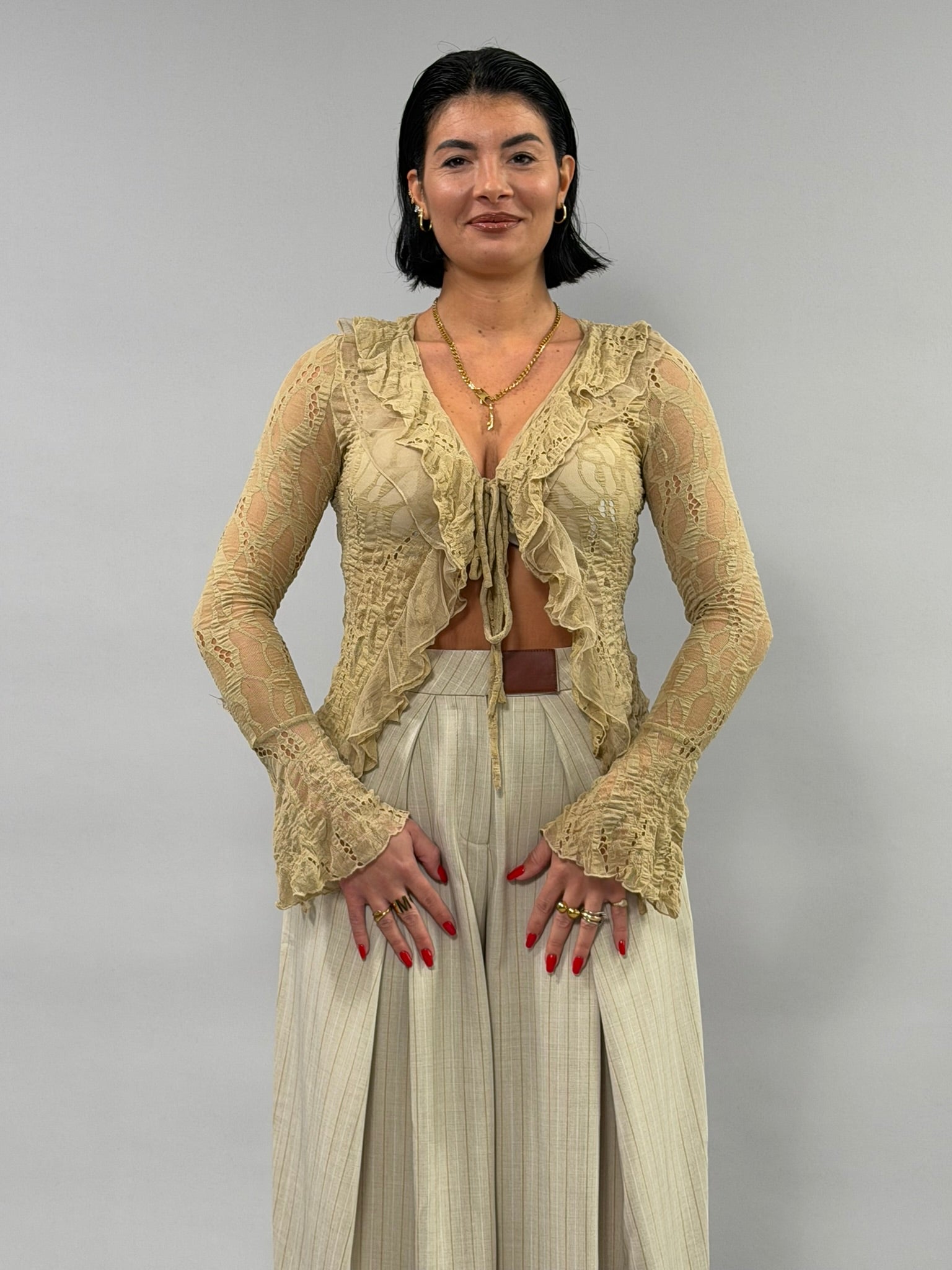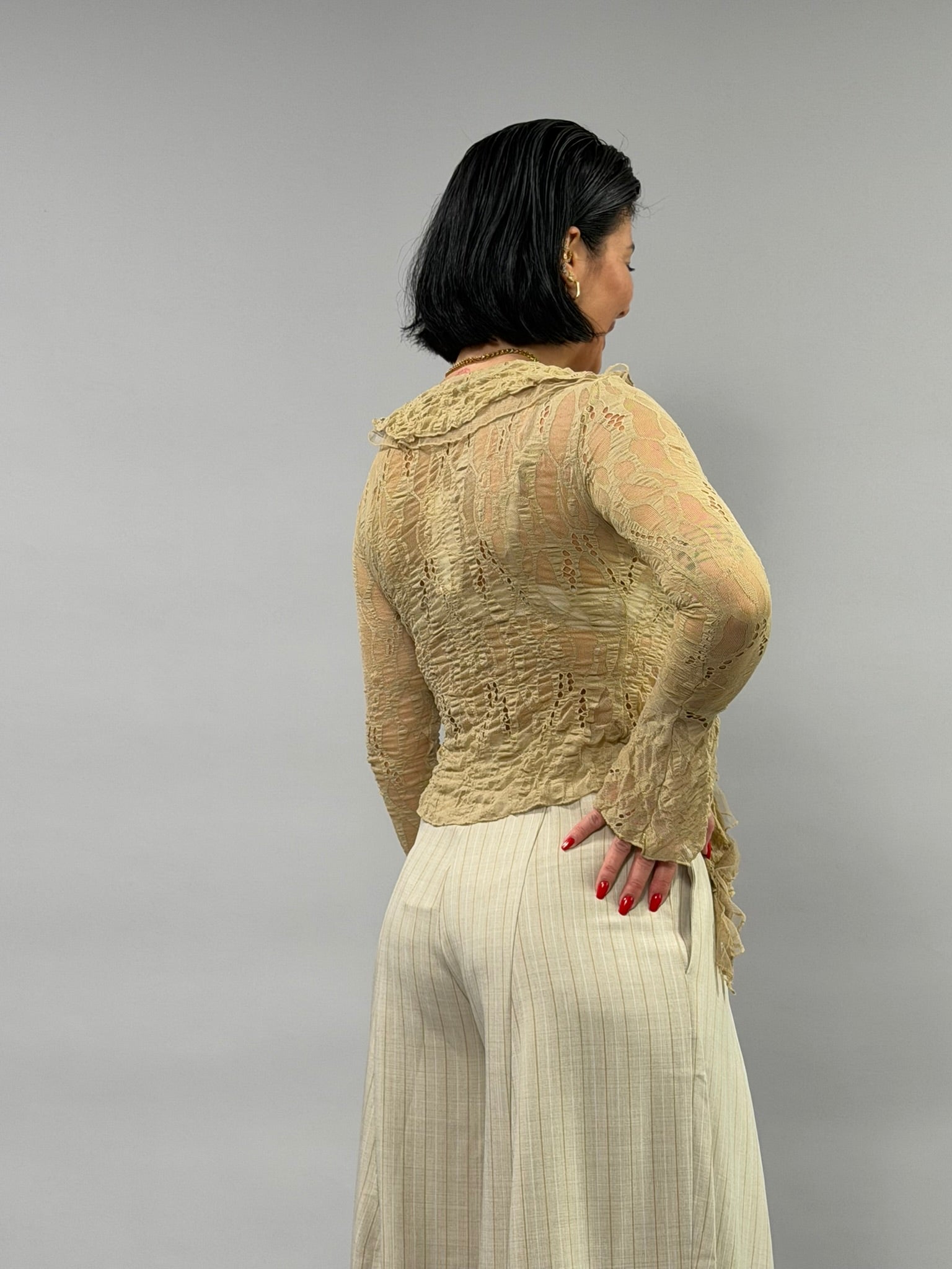 Maglia Brige realizzata in un blend versatile di cotone, nylon e spandex che garantisce comfort e libertà di movimento. La composizione del 50% cotone assicura traspirabilità, mentre il nylon e lo spandex (10%) donano elasticità e durata nel tempo. Disponibile nelle taglie S-M e L-XL. La modella nella foto indossa la taglia S-M ed è alta 168 cm, per aiutarti a valutare la vestibilità.