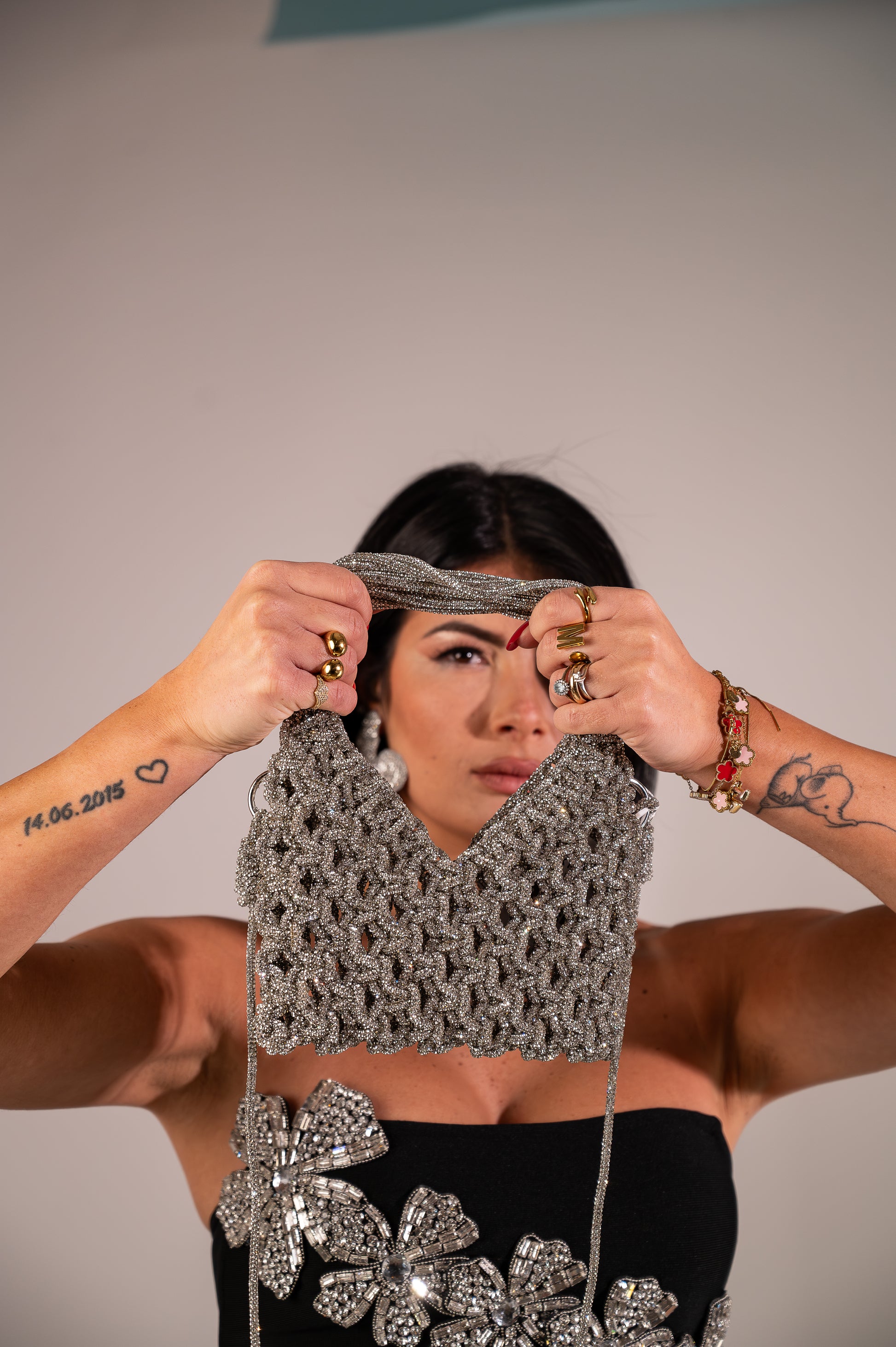 Borsa Chic realizzata con cristalli Swarovski che catturano la luce con eleganza e raffinatezza. Perfetta per aggiungere un tocco di lusso ai tuoi outfit, questa borsa combina stile sofisticato e versatilità. Ideale per occasioni speciali o per chi desidera un accessorio che risalti con classe e brillantezza.