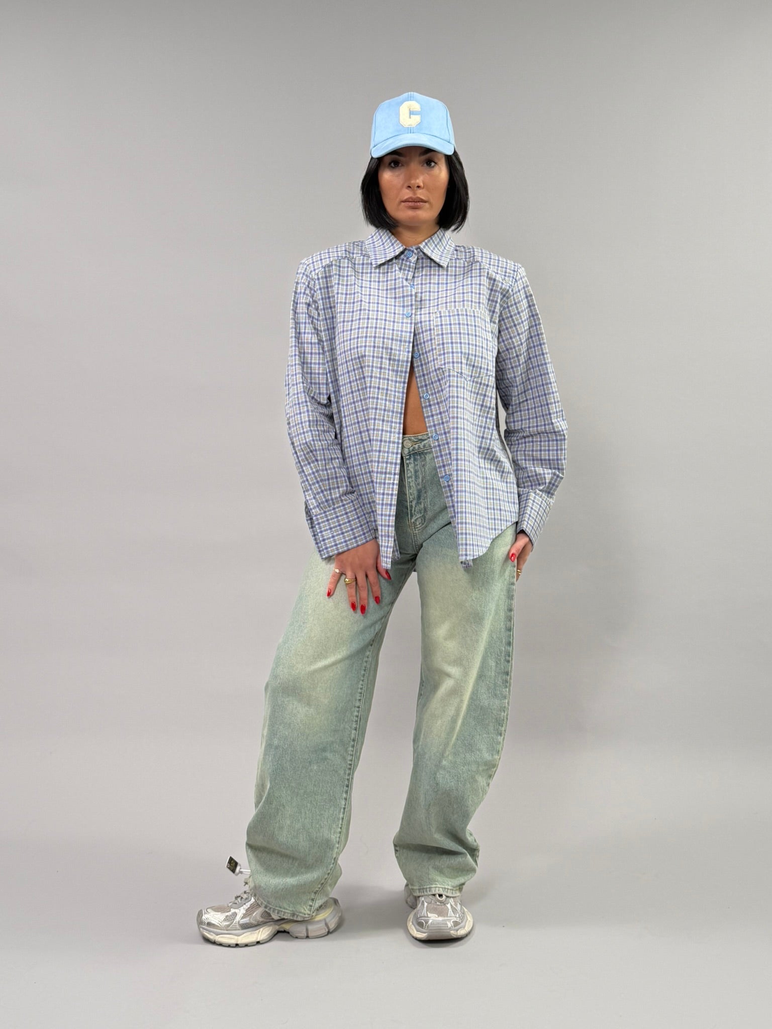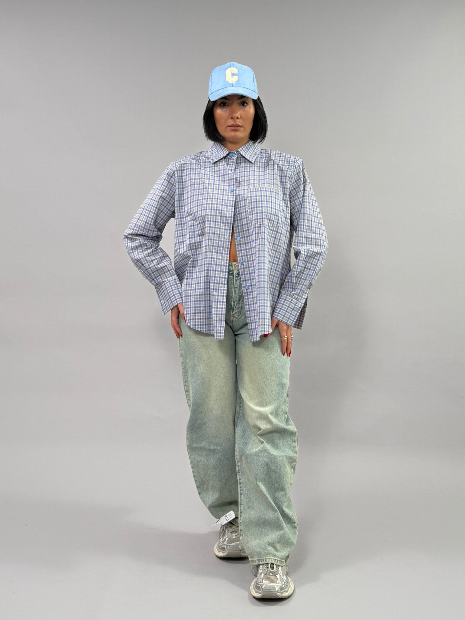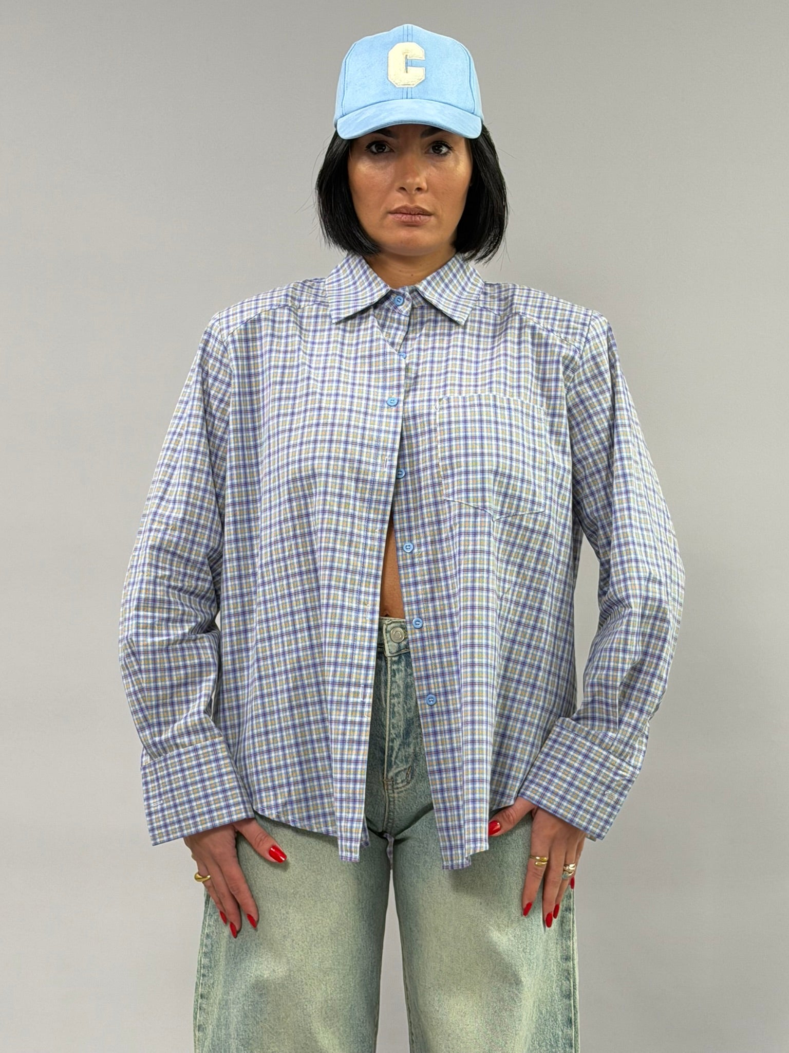 Camicia Robby in puro cotone 100%, perfetta per uno stile casual e versatile. Caratterizzata da un elegante motivo a quadri nei toni del celeste e giallo, questa camicia taglia unica si adatta a diverse silhouette. La modella in foto, alta 168 cm, mostra come indossarla con naturalezza. Ideale per creare look rilassati sia in ufficio che nel tempo libero, grazie alla qualità del tessuto naturale che garantisce comfort e traspirabilità durante tutto il giorno.