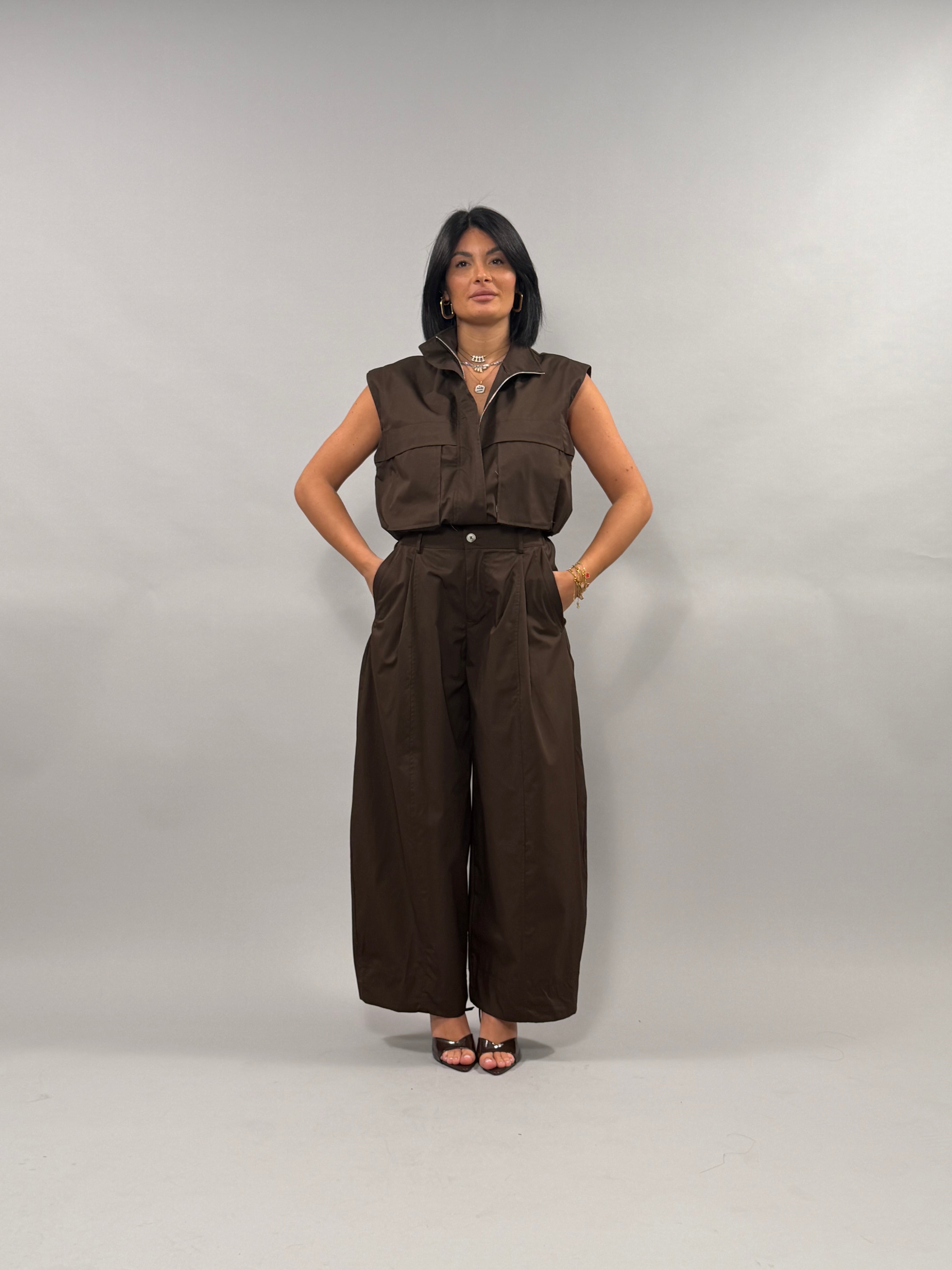 Il Coordinato Miami è disponibile nelle eleganti varianti panna e marrone. Con una taglia unica, si adatta a diverse silhouette, inclusa una modella alta 168 cm. Questa versatilità lo rende ideale per chi cerca comfort e stile in un'unica soluzione.