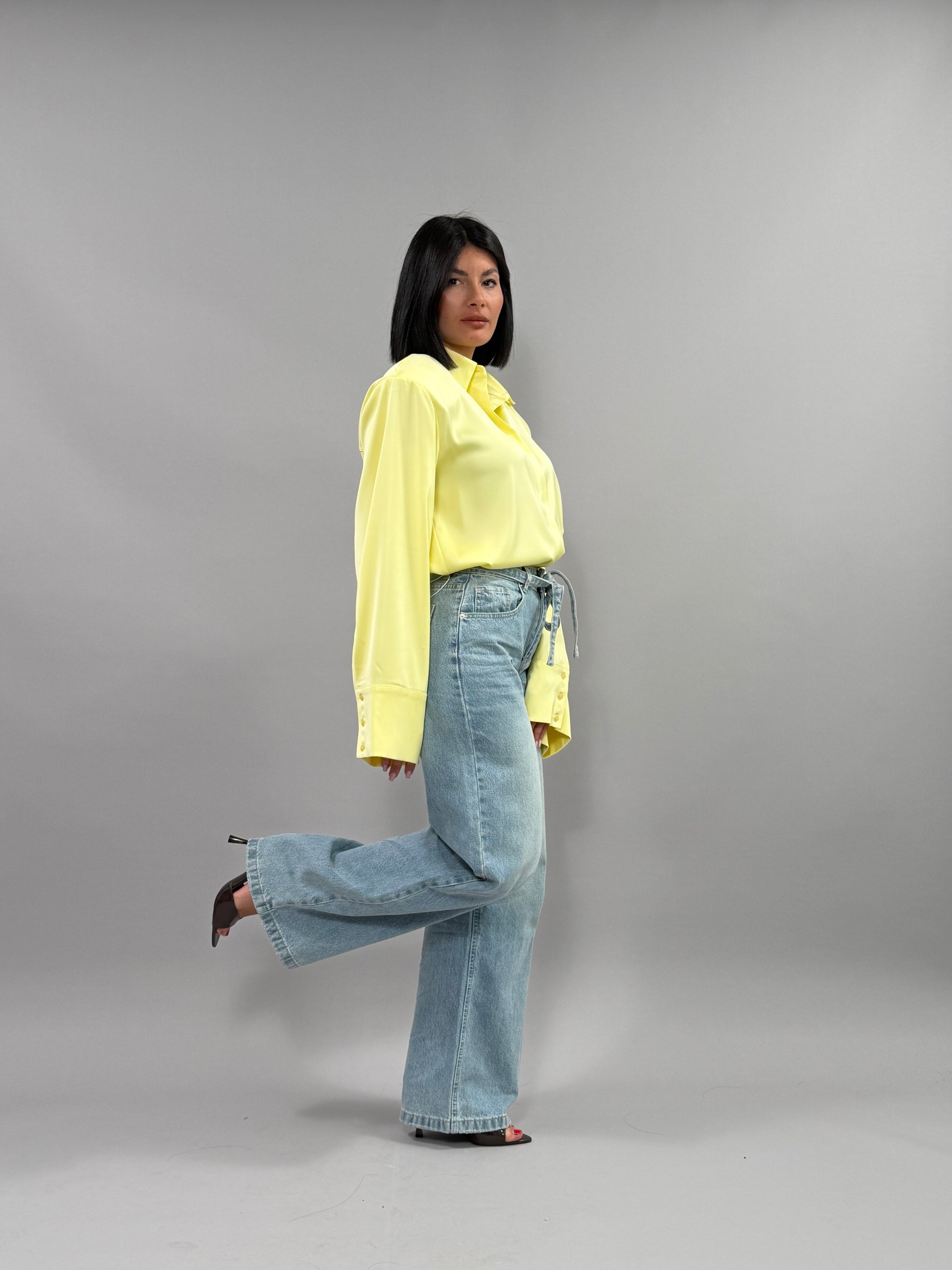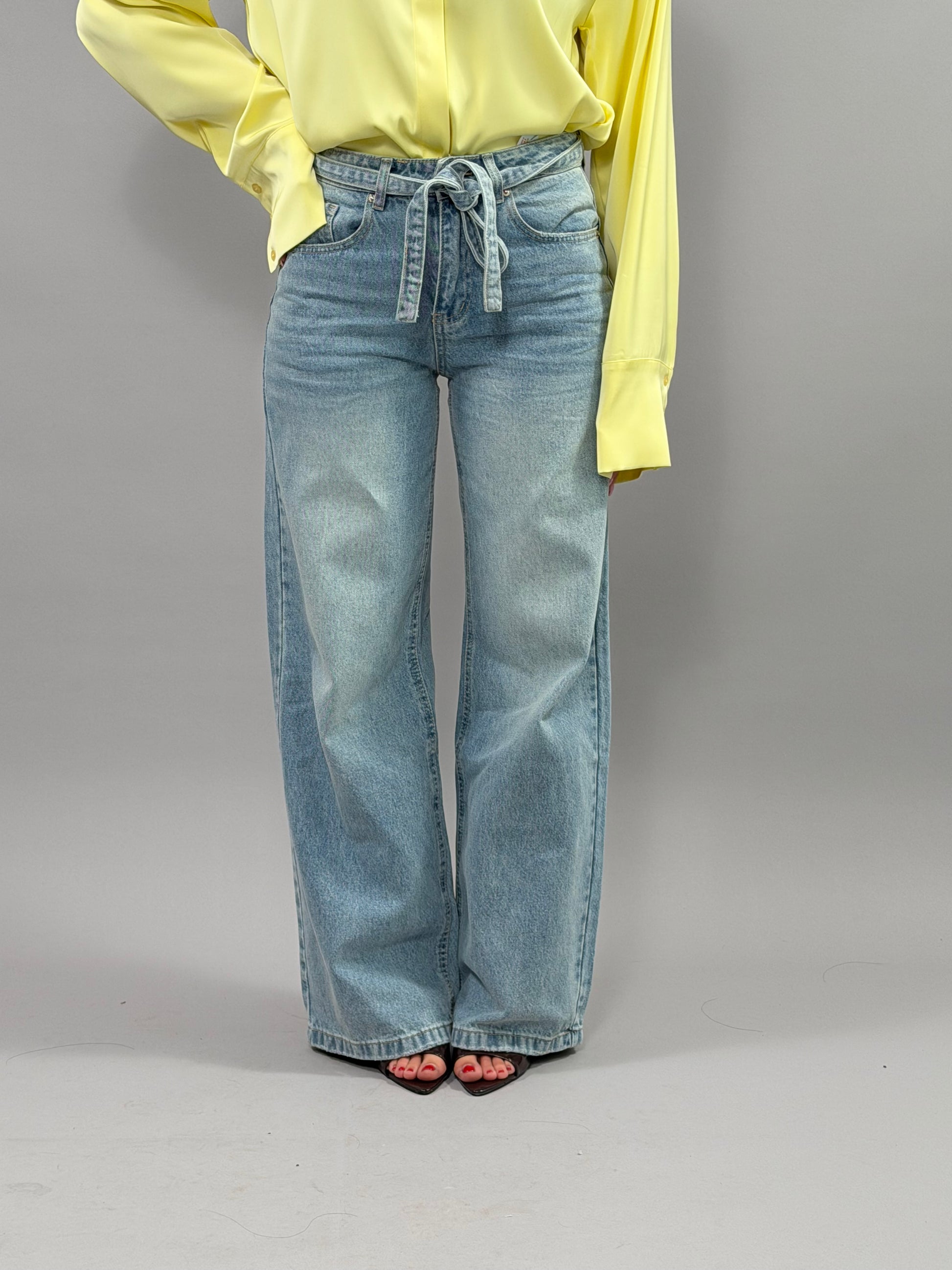 I Jeans Faby sono disponibili nelle taglie S, M, L e XL, garantendo una vestibilità adatta a diverse silhouette. La modella indossa una taglia S ed è alta 168 cm, dimostrando come il design si adatti a varie altezze e corporature, assicurando comfort e versatilità.