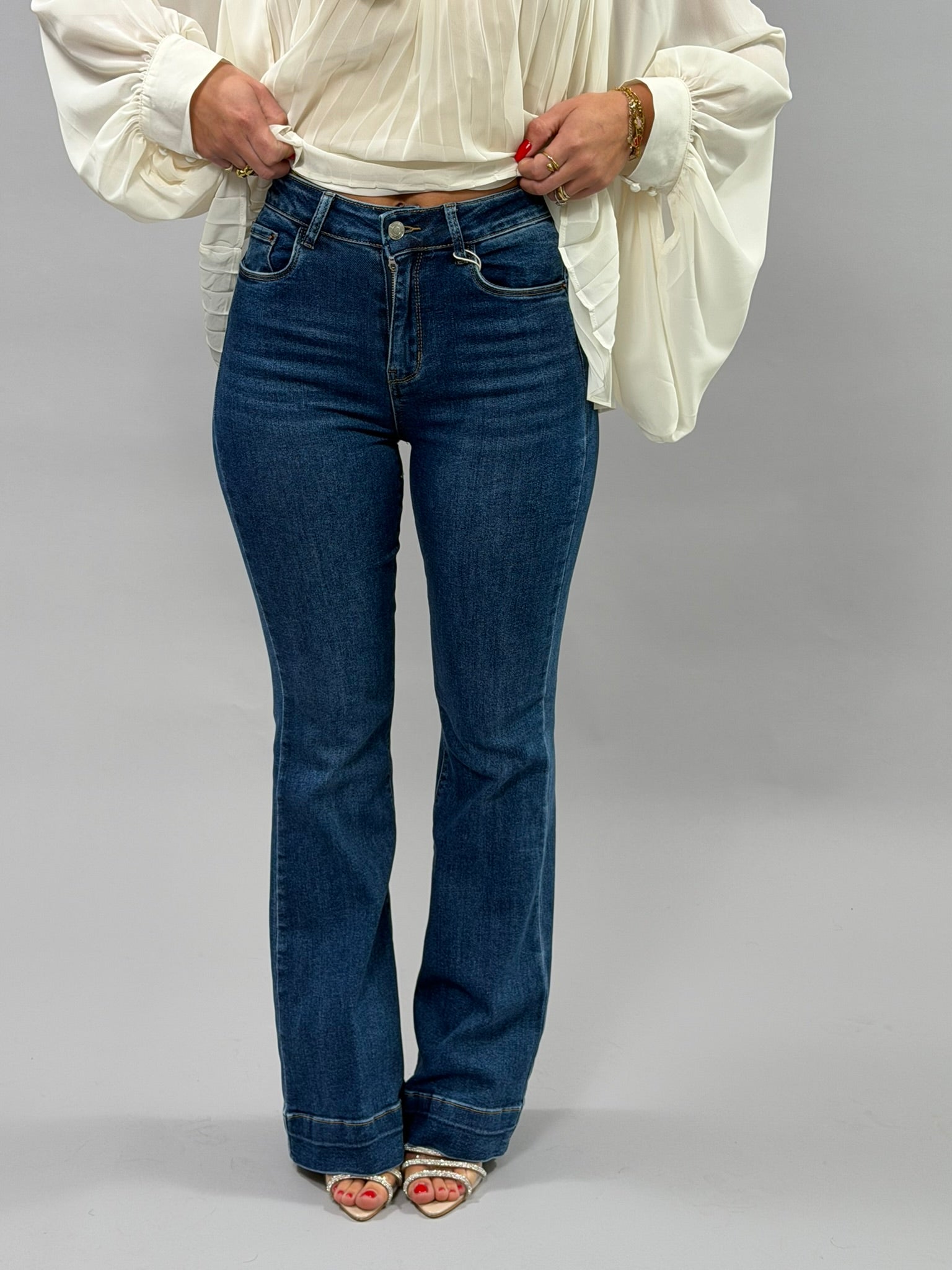 Jeans Mery realizzati in un blend di qualità: 65% cotone, 30% poliestere e 5% elastico per comfort e libertà di movimento. La composizione garantisce una vestibilità perfetta che si adatta al tuo corpo, mantenendo forma e colore nel tempo. Disponibili dalla XS alla XL, questi jeans sono ideali per chi cerca un capo versatile e durevole da indossare ogni giorno. La modella in foto (altezza 168 cm) indossa la taglia S come riferimento.