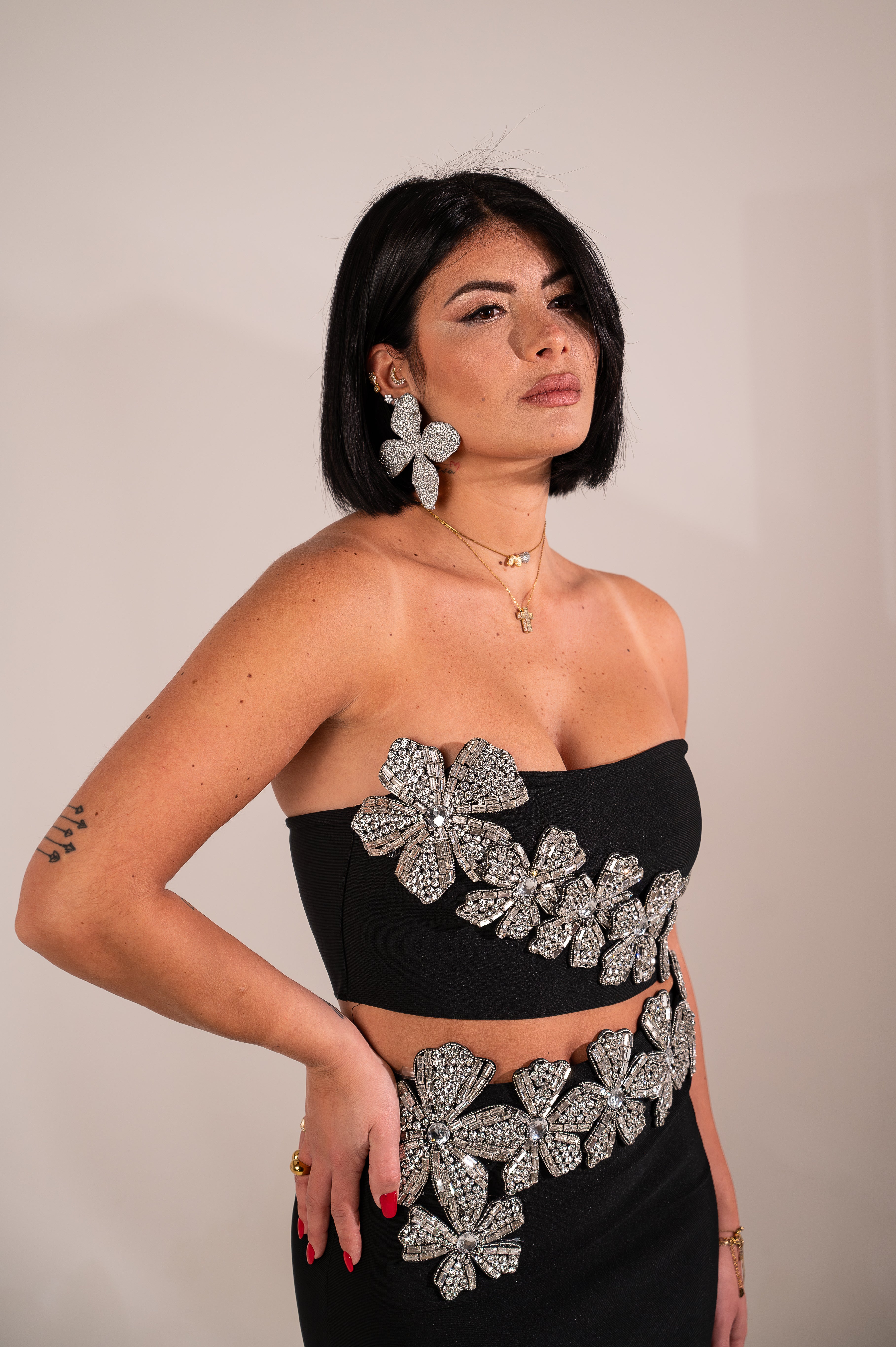 Orecchino Chic a forma di fiore impreziosito da brillantini che catturano la luce con eleganza. Perfetto per aggiungere un tocco di sofisticatezza al tuo look quotidiano o per occasioni speciali. Il design floreale delicato lo rende versatile e adatto a qualsiasi stile. Un accessorio che combina bellezza e semplicità, ideale per chi ama i dettagli raffinati senza eccessi.