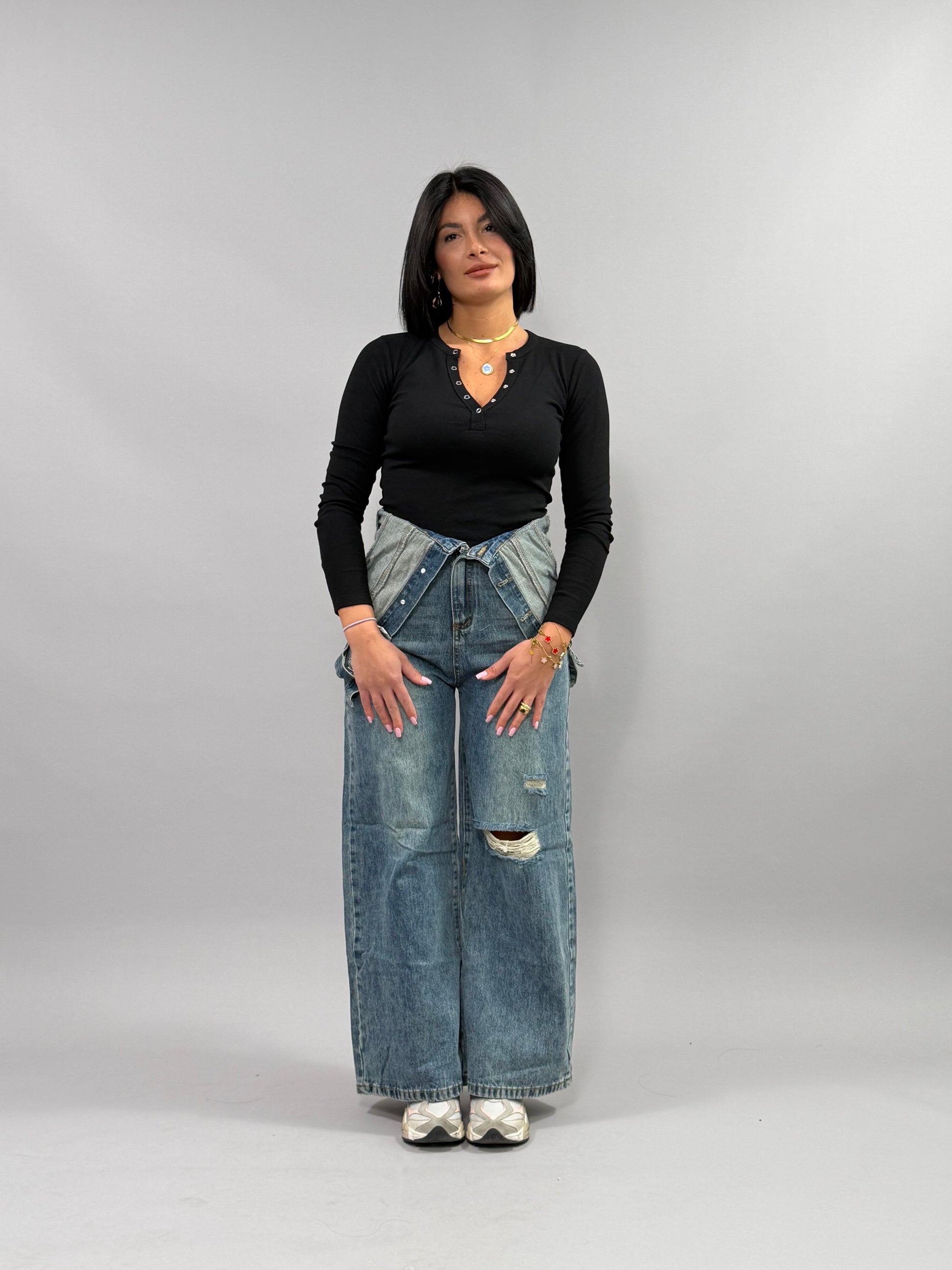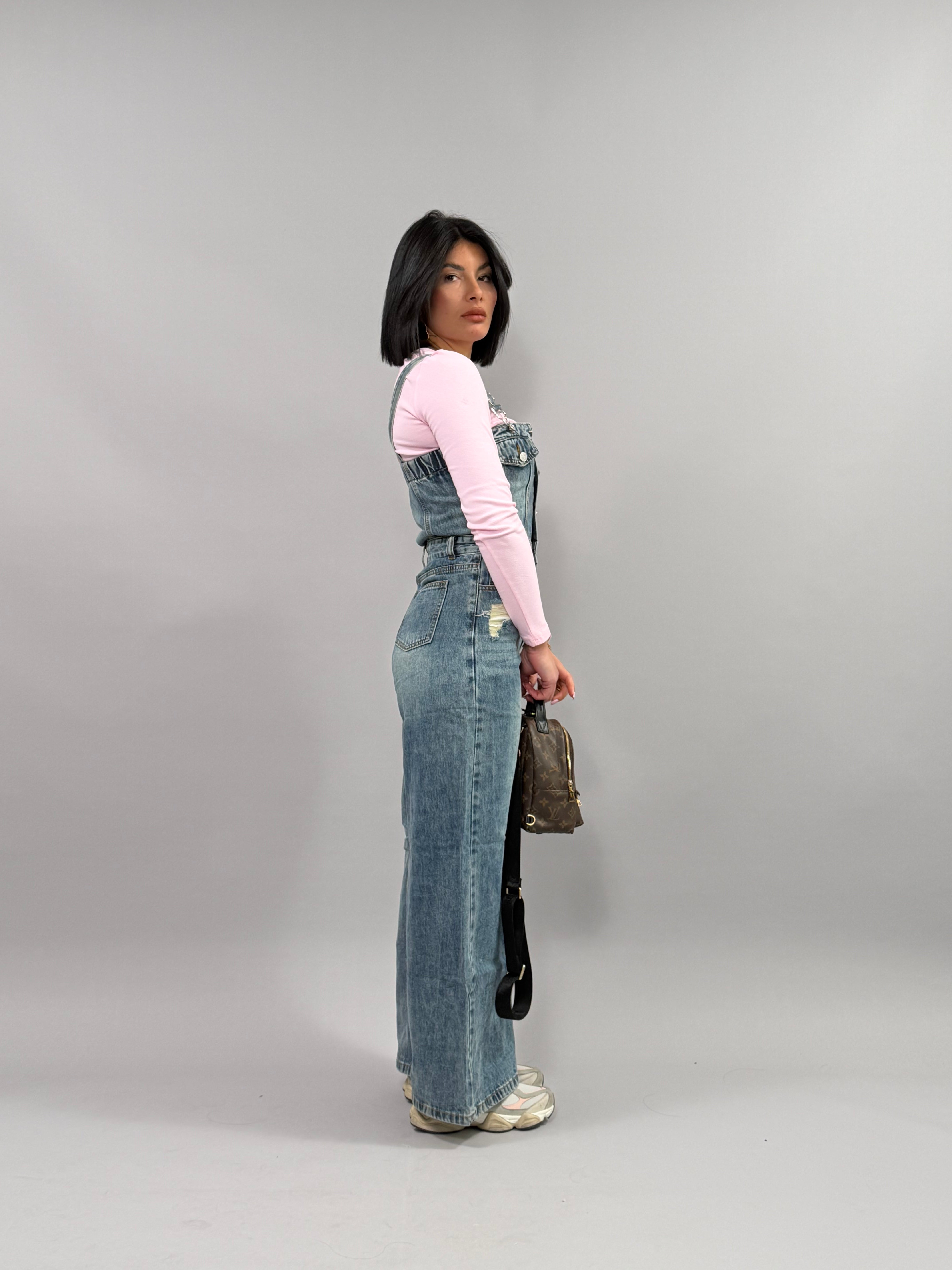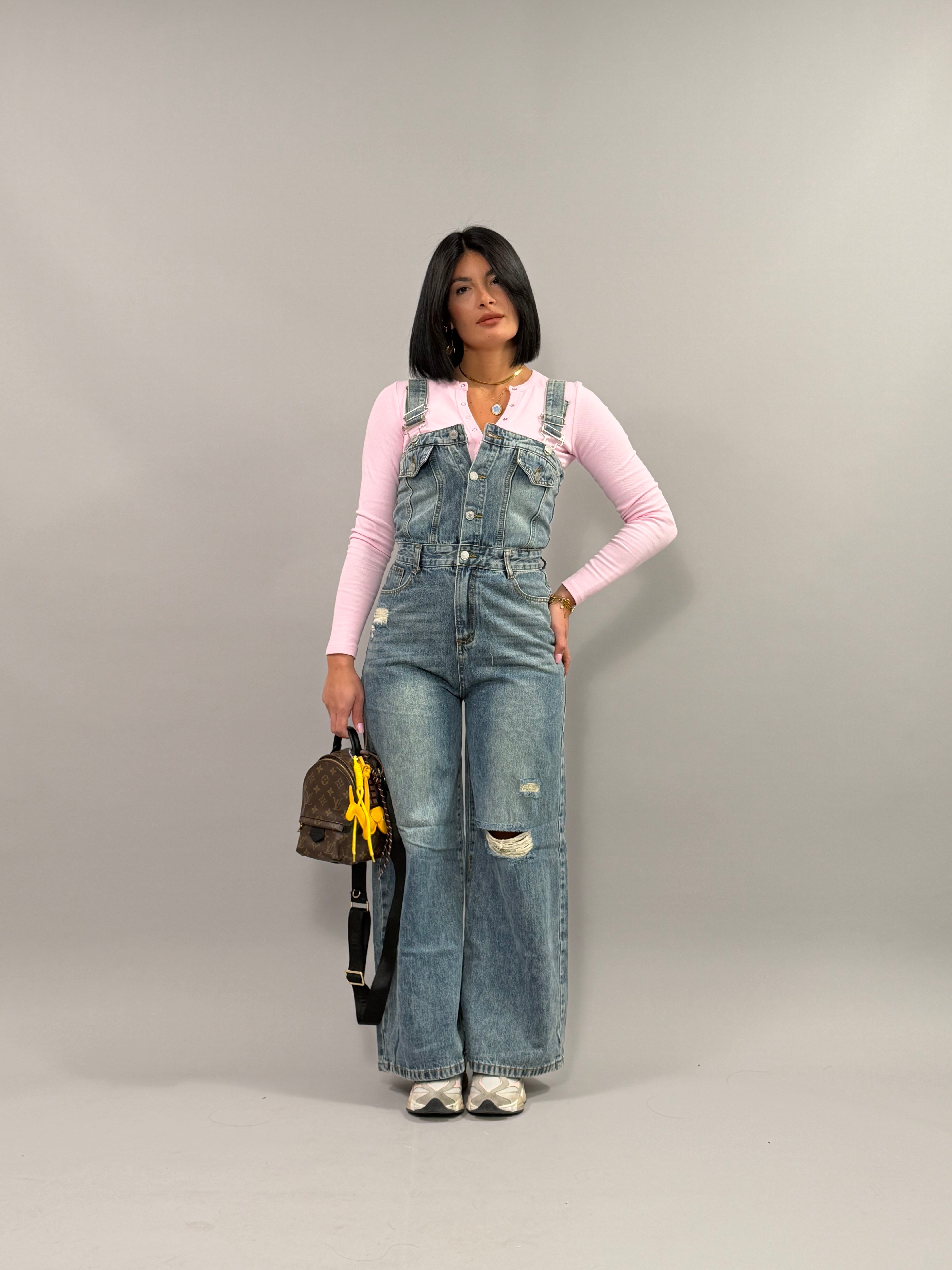 La Salopette Tania è disponibile nel colore denim e nelle taglie S, M e L. La modella indossa una taglia S ed è alta 168 cm. Questo prodotto offre una vestibilità comoda e versatile, adatta per vari stili, garantendo al contempo un aspetto moderno e pratico.