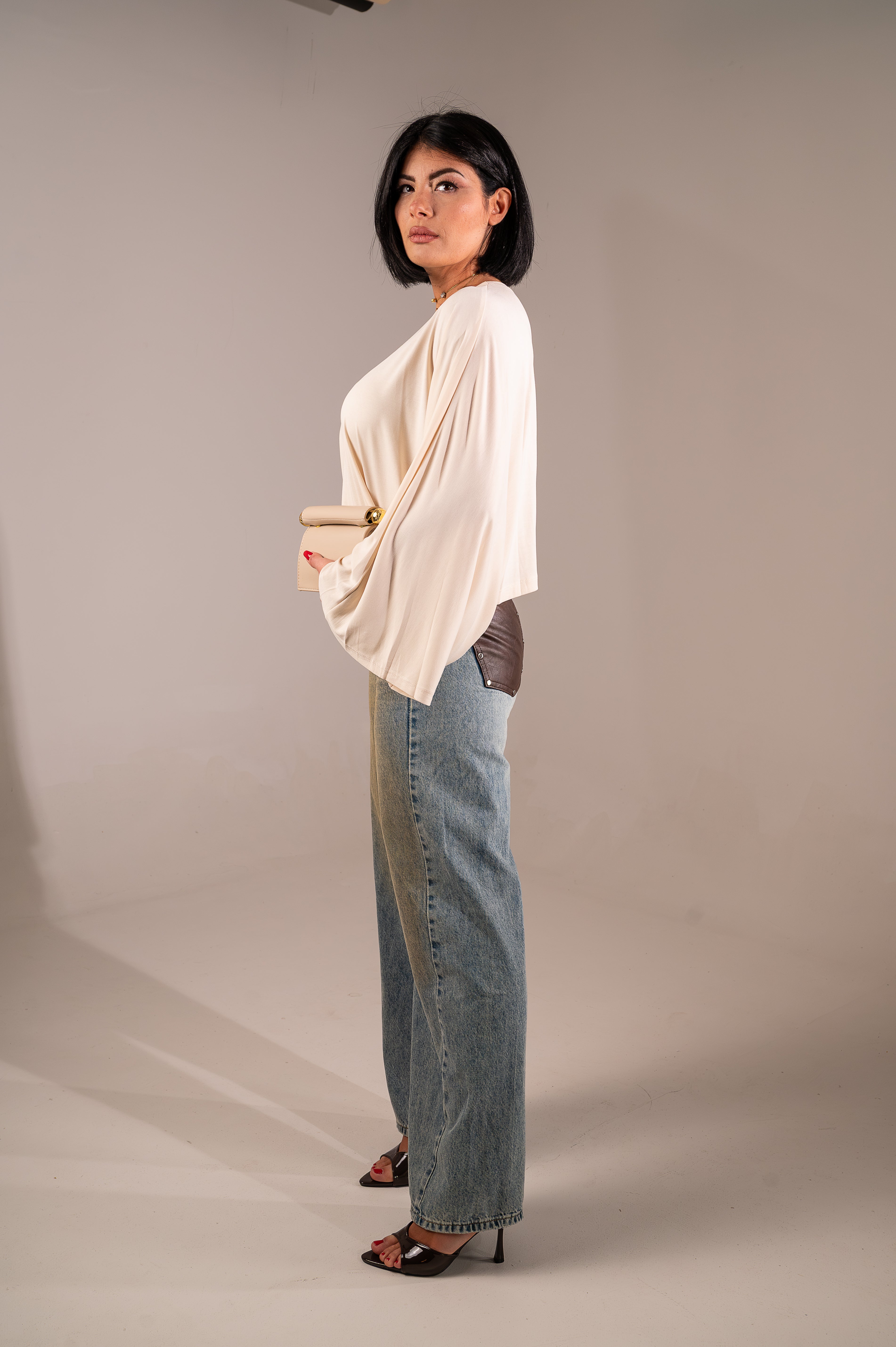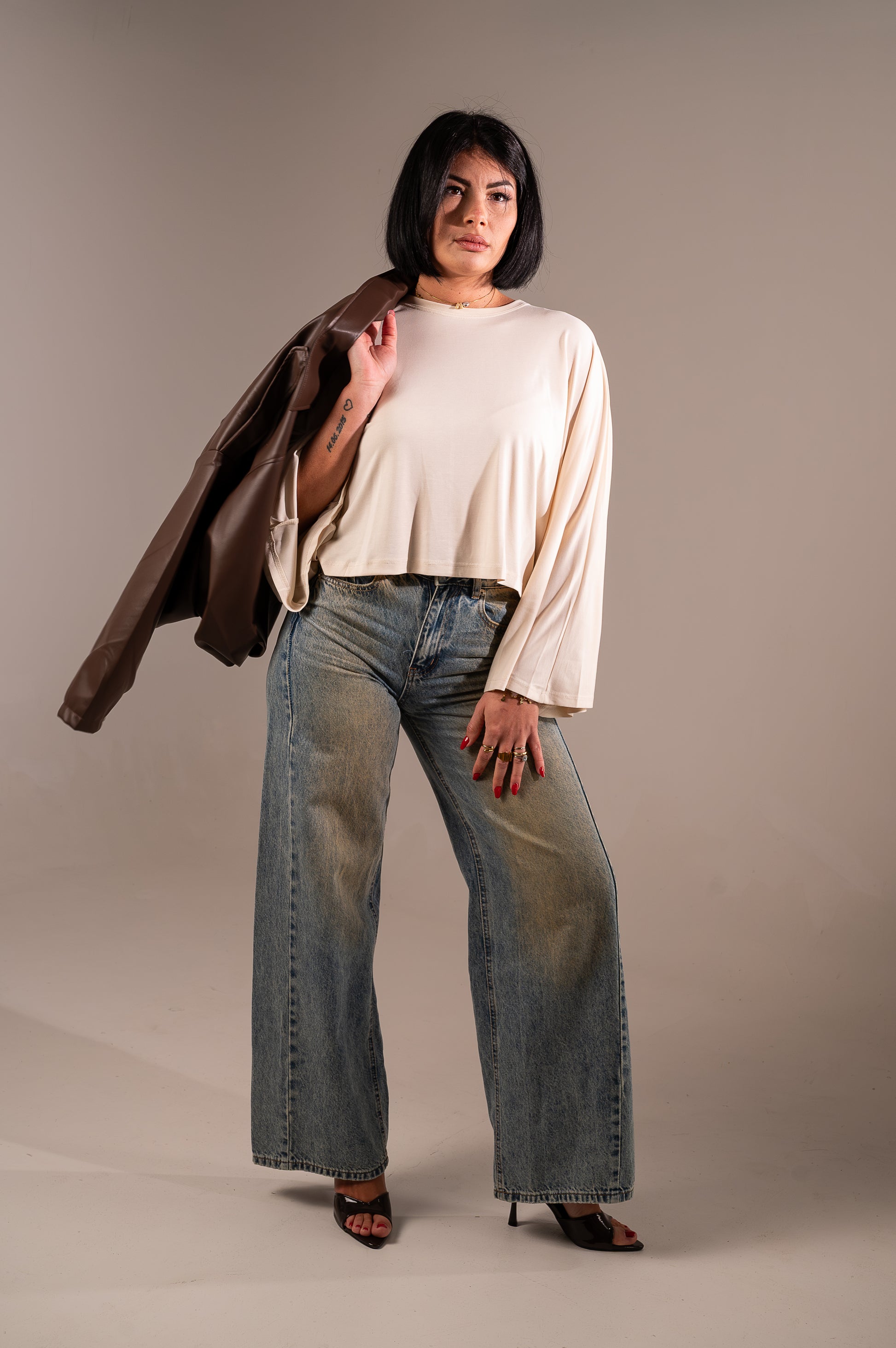 Scopri la T-Shirt Butterfly, un capo essenziale che unisce comfort e stile. Realizzata in un pregiato blend di cupro e viscosa (55% cupro, 45% viscosa), questa maglietta offre una morbidezza straordinaria e una caduta elegante. Disponibile in tre tonalità sofisticate—panna, nera e bianca—si adatta perfettamente a qualsiasi guardaroba. Le taglie S-M e M-L garantiscono una vestibilità ideale per diverse corporature. Un pezzo versatile per il giorno e la sera.
